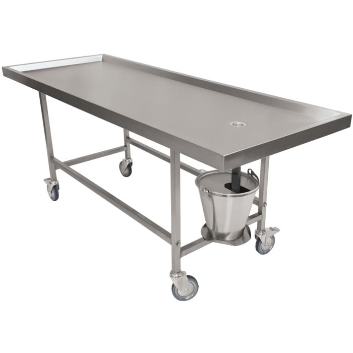 Mesa de autopsias BASIC móvil con cubo desagüe - Altura 850 mm.