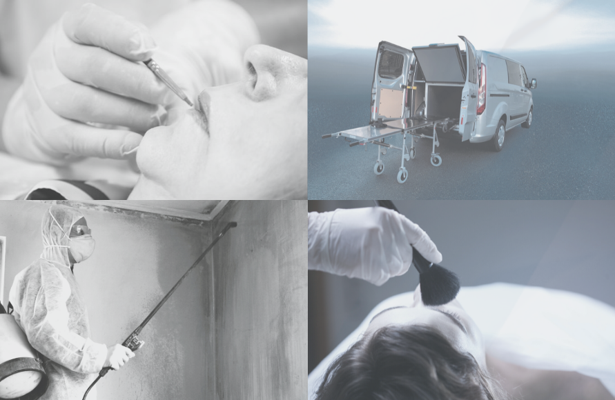 HYGECO con su servicio "Asistencia Post Mortem". Experto en servicios post mortem: conservación y acondicionamiento de difuntos, cuidados sanitarios y retirada de marcapasos, transporte de los cuerpos antes y durante el velatorio (sólo en Francia) y asistencia en caso de catástrofes y accidentes.